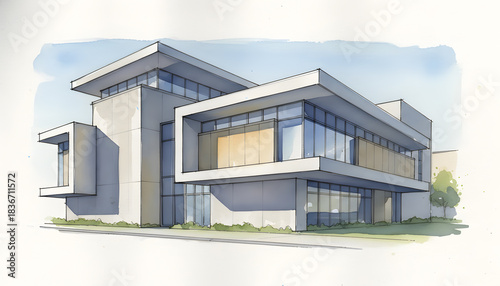 Modern Corporate Building Architectural Sketch