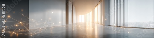 Modern Corridor with Light and Network Connection, Ideal for Technology and Business Concepts