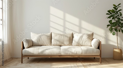 Modern Cozy Living Room with Beige Sofa, Indoor Plant, and Sunlit Space