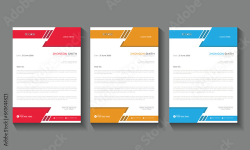 Modern Creative & Clean business style letterhead bundle. corporate business letterhead 3 colorful design template