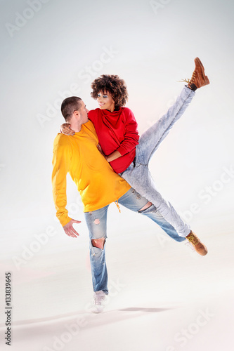 Modern dancers in studio.