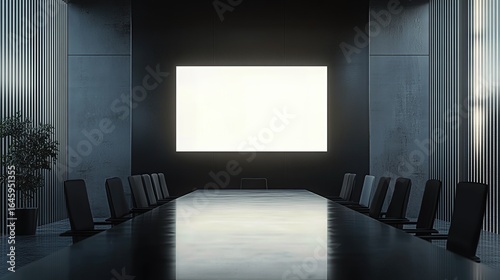 Modern Dark Conference Room Interior Design with Blank Screen for Presentation