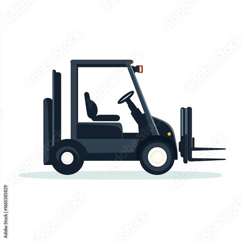Modern Dark Gray Forklift Truck with Clear White Background and Subtle Ground Shadow.