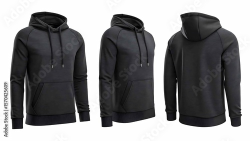 Modern dark grey heathered hooded sweatshirt with front pocket and drawstring isolated on white or transparent png
