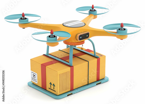 Modern Delivery Drone with Package Ready for Transport and Shipping