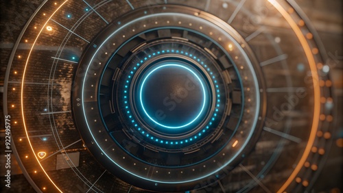 Modern Digital Interface with Black Background and Luminous Blue Circle
