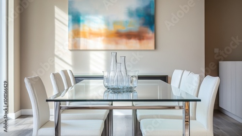 Modern Dining Room with Glass Table and White Chairs