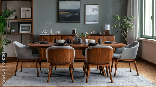 Modern Dining Room with Wooden Table and Chairs