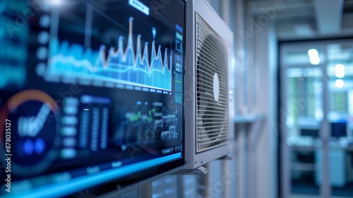 Modern display showing data analysis for HVAC efficiency monitoring, highlighting energy cost calculations.