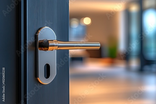 Modern door handle on black door. Perfect for design, architecture, or home decor projects.