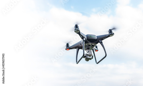 Modern drone in the sky.