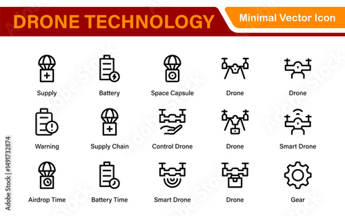 Modern Drone Technology Icons – Clean Outline, Line Art, and Vector Illustrations for Drones, UAVs, Aerial Robotics, and Digital Platforms