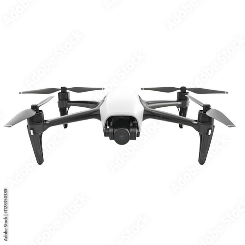 Modern drone with a camera isolated on a white transparent background, 3d rendering