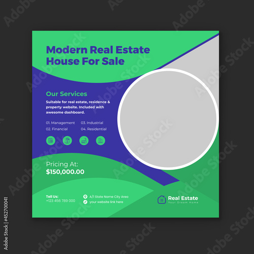 Modern elegant house for sale Instagram post and real estate social media post template.