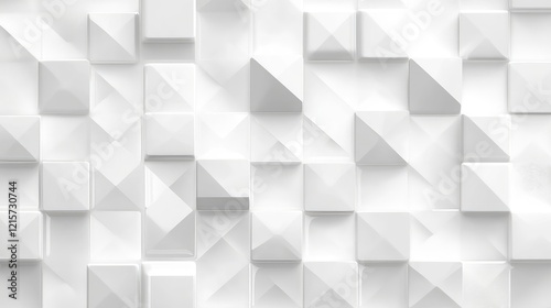 Modern Elegant White Geometric Background Featuring Shiny Crystal Marble Textures with Three-Dimensional Tiles in Soft Light