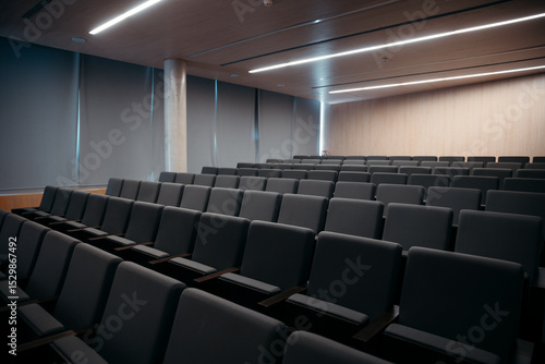 Modern Empty Auditorium with Comfortable Seats and Minimalist Design