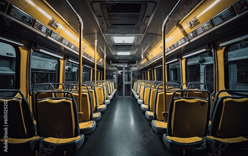 Modern empty bus inside view with passenger seats generative ai