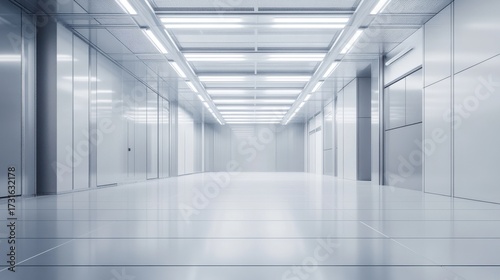 Modern empty hallway with bright lighting in a futuristic building setting