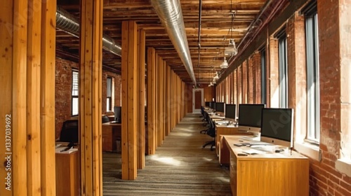Modern Empty Home Office Room Interior With Blank Wall, Computer, Table, Bookshelf Mockup Frame -Ai