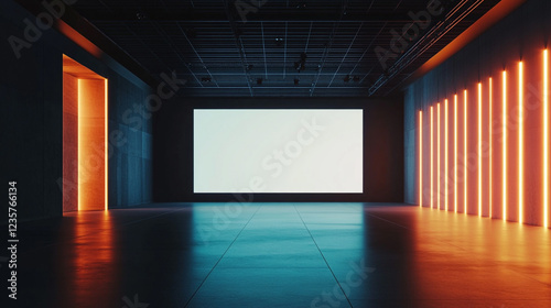 Modern Empty Room Neon Lights Minimalist Interior Design Studio Space Blank Screen Presentation