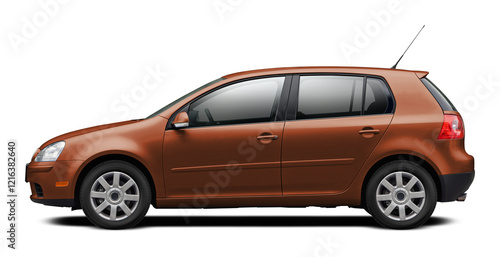 Modern European car with a side view, hatchback body, all brown. In png format on a transparent background.