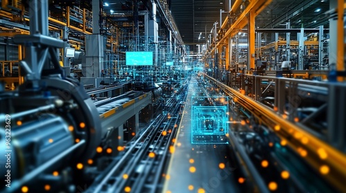 Modern factory and communication network concept Telecommunication IoT Internet of Things ICT Information communication Technology 5G Smart factory Digital transformation : Generative AI