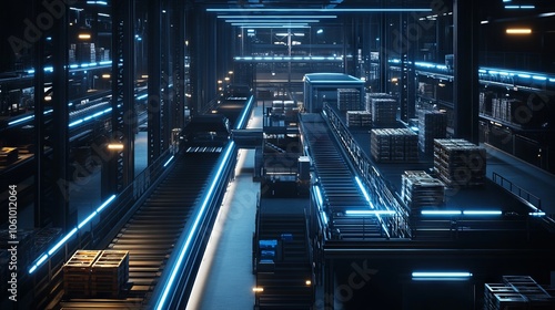 Modern Factory Hall with Conveyor Belts. AI generated illustration