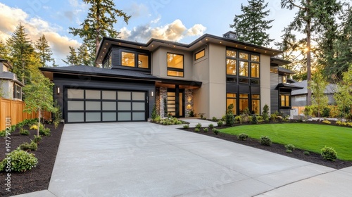 Modern Family Home Surrounded by Lush Greenery and Trees