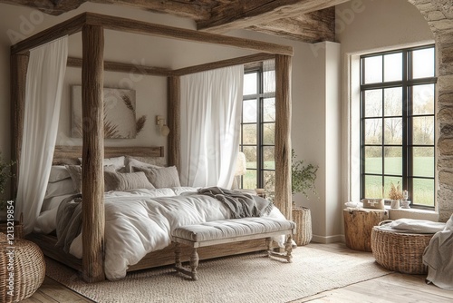 modern farmhouse bedroom rustic elegance with natural elements 3d visualization