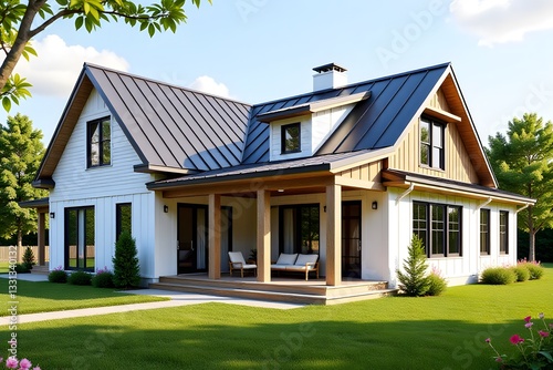 Modern Farmhouse with Rustic Charm, Metal Roof, and Cozy Front Porch