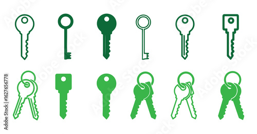 Modern Flat Key Collection - 12 Sleek Icons for Apps & Web Interfaces (SVG/EPS)