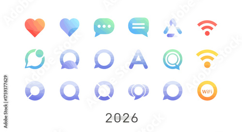 Modern Flat Vector Social Icon Pack for Connection and Community, People, Chat, Heart, Post, White Background, Top View Concept