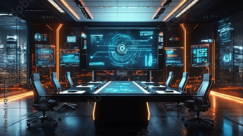 Modern Futuristic Conference Room with Advanced Technology Displays