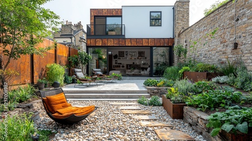 Modern Garden Oasis: Serene Backyard Design with Corten Steel