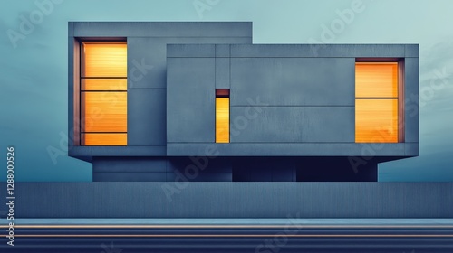 Modern Geometric Architecture Design with Illuminated Windows
