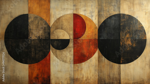 Modern Geometric Hand Painted Background. Chic Black Gold Brown Acrylic Brush Paint Poster. Big Dots Geometric Texture. Cool Circular Interior Design Canvas. Luxurious Vintage Circles Oil Painting.