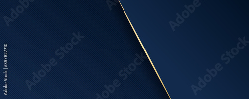 Modern geometric luxury card template for business or presentation with golden sloping lines on a dark blue background.
