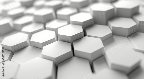 Modern geometric pattern created with white hexagonal tiles on a textured wall surface