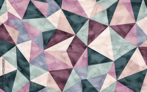 Modern geometric seamless pattern with muted pastel triangles and polygons in pink teal and beige tones