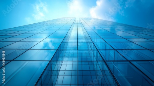 Modern glass and steel building with sky reflection. Useful for articles about modern architecture and urban design.