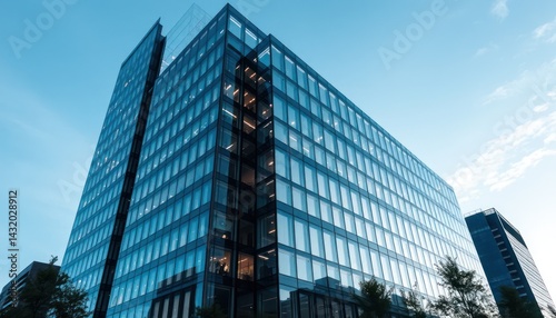 Modern glass high-rise building against a clear sky