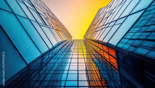 Modern Glass Skyscrapers at Sunset, Blue and Orange Hues