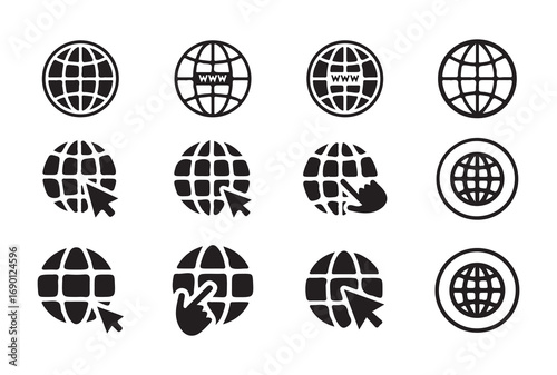 Modern Globes and Earth Icons to Represent Globalization, Connectivity, and International Services