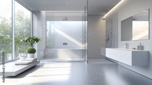 Modern Gray Bathroom Interior with Abundant Natural Light and Elegant Design Aesthetics