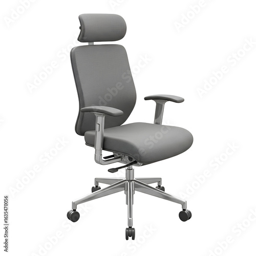 Modern Gray Ergonomic Office Chair Isolated Against Transparent Background