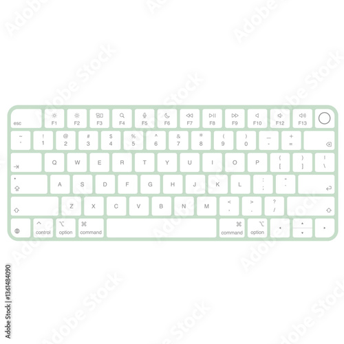 Modern green desktop bluetooth keyboard isolated on white. US layout.Vector illustration