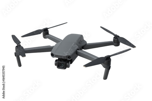 Modern grey quadcopter drone hovering with transparent background
