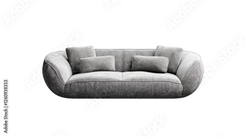 Modern grey sofa with pillows isolated on transparent background