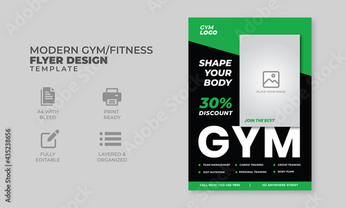 Modern gym flyer design template green and black layout, a4 design for gym, ready to print,