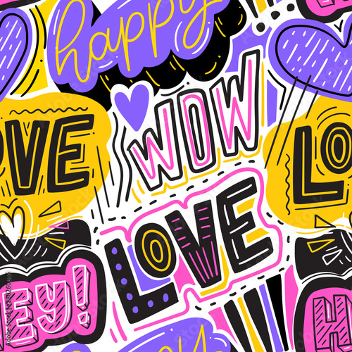 Modern hand drawn lettering seamless pattern for print, textile, fabric. Typography love background.